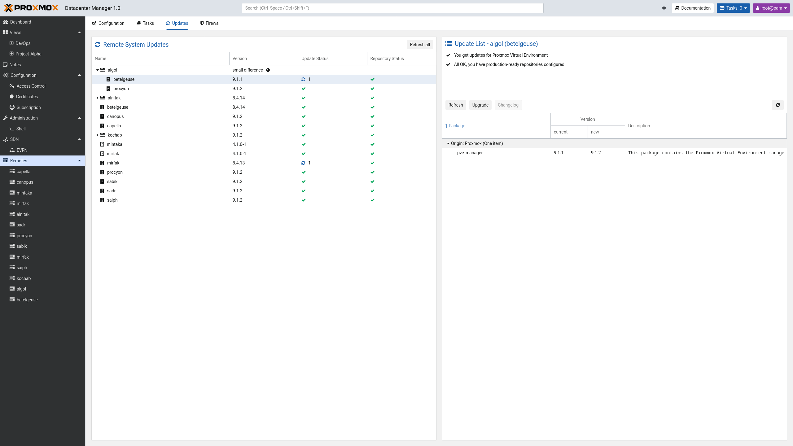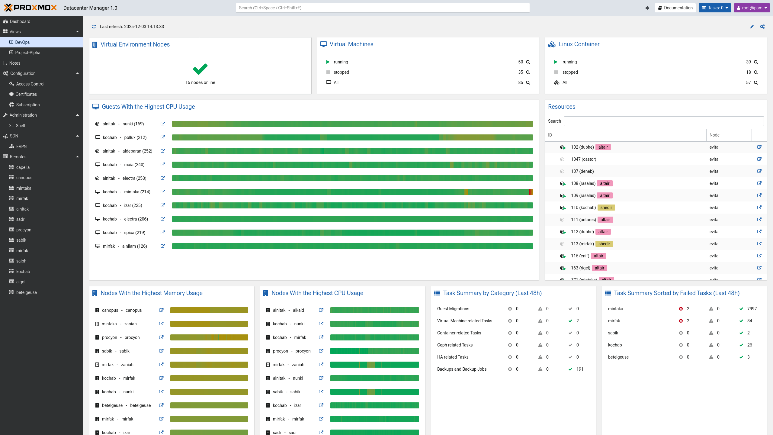 The Proxmox Datacenter Manager graphical interface can be roughly split into three different section: