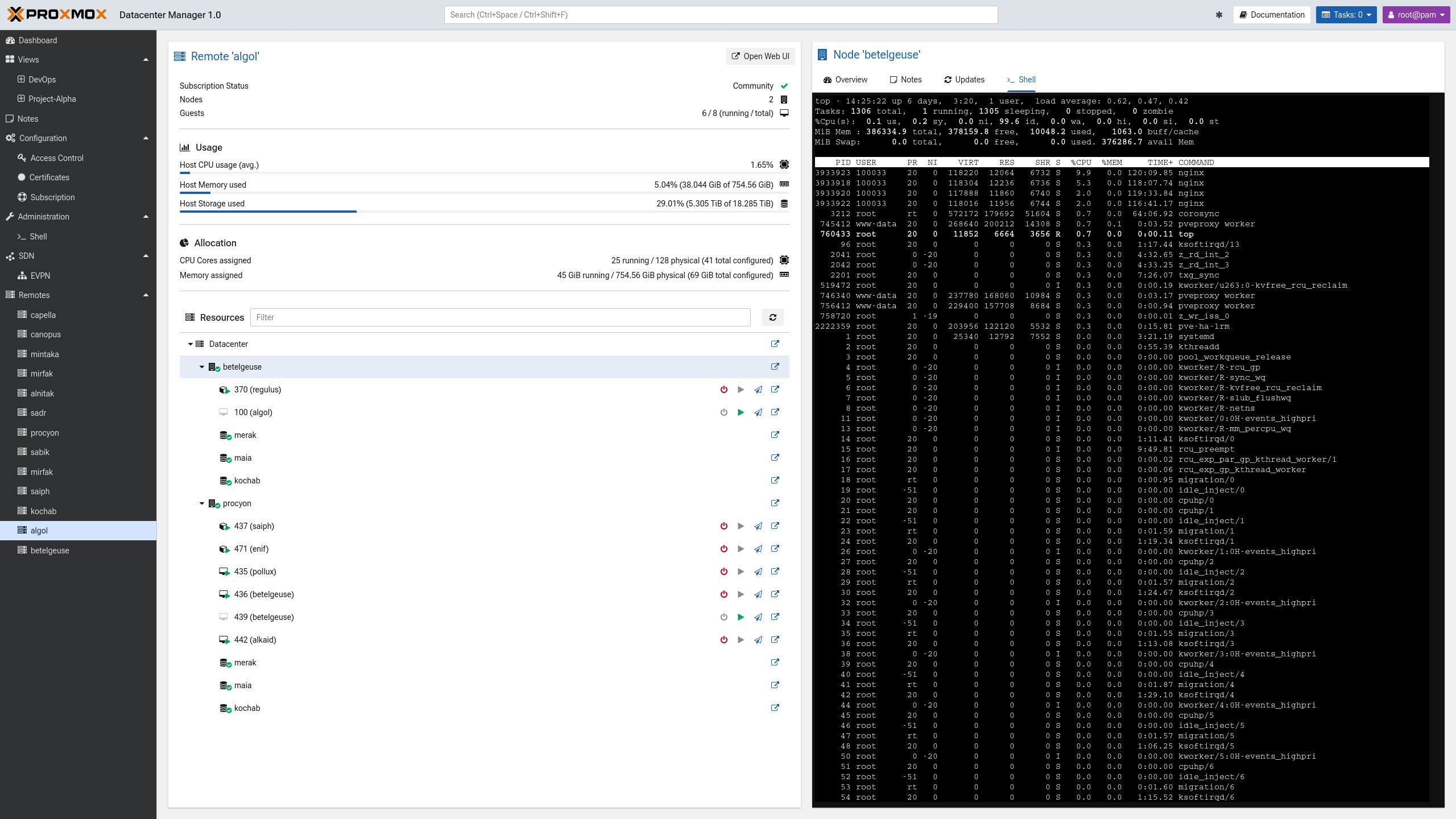 Proxmox Datacenter Management offers an integrated, web-based interface to manage the server. This means that you can carry out all administration tasks through your web browser, and that you don't have to worry about installing extra management tools. The web interface also provides a built-in console, so if you prefer the command line or need some extra control, you have this option.